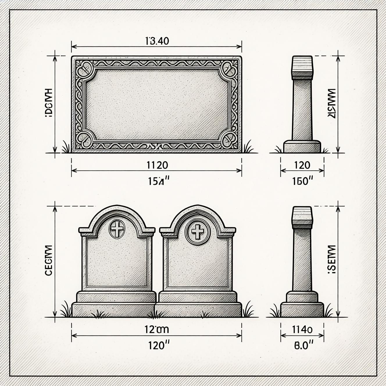 1. تعیین ابعاد و طرح مناسب قبل از خرید، باید ابعاد دقیق سنگ قبر را با توجه به قبر و فضای مکان مشخص کنید. معمولاً ابعاد استاندارد سر قبرها بین ۴۰×۶۰ تا ۵۰×۸۰ سانتیمتر است، اما میتوانید سفارشی سازی کنید.