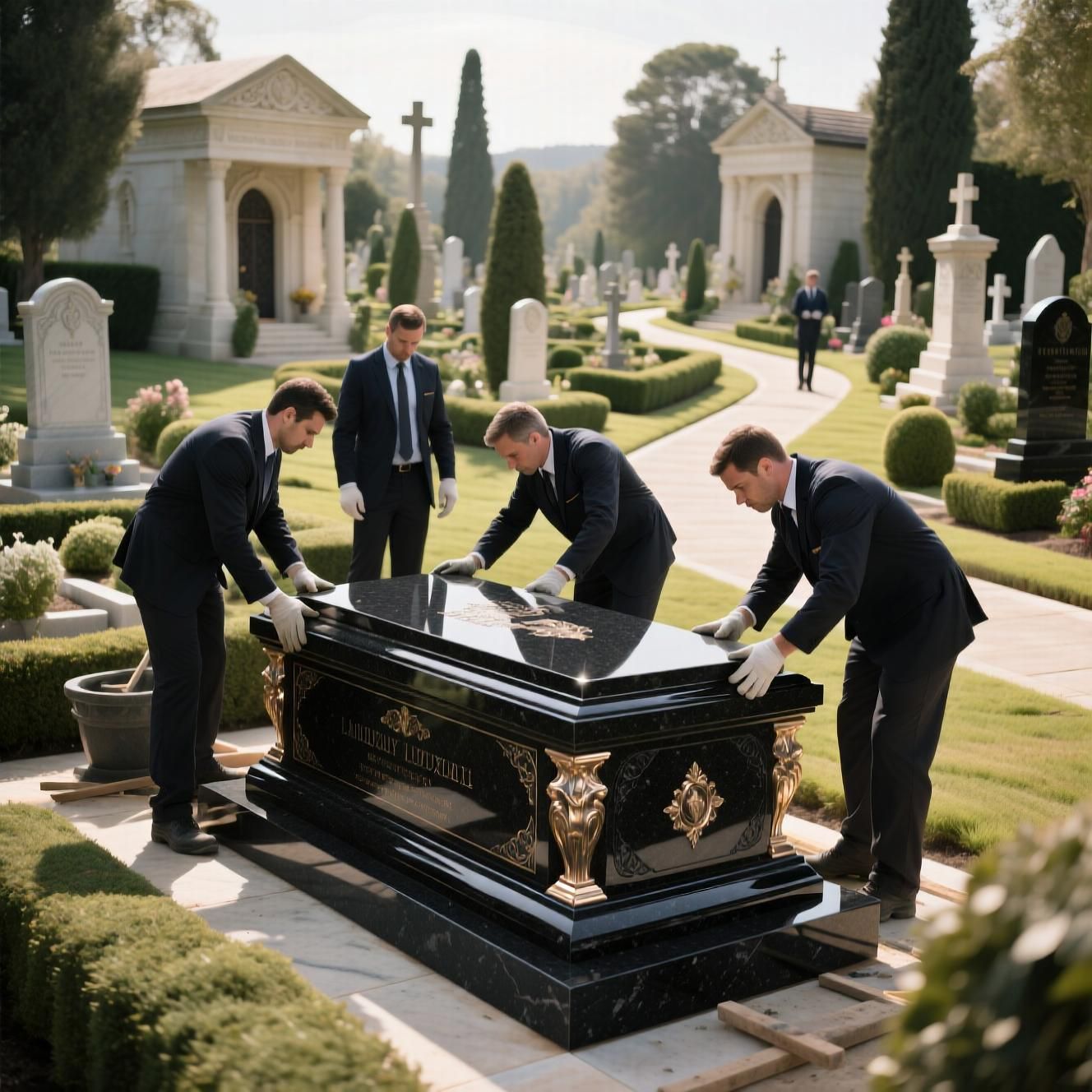 2. زیبایی و شکوه بصری رنگ مشکی عمیق و براق آن، حس احترام و جدیت را منتقل میکند و فضای قبر را به مکانی مقدس و زیبا تبدیل میکند.