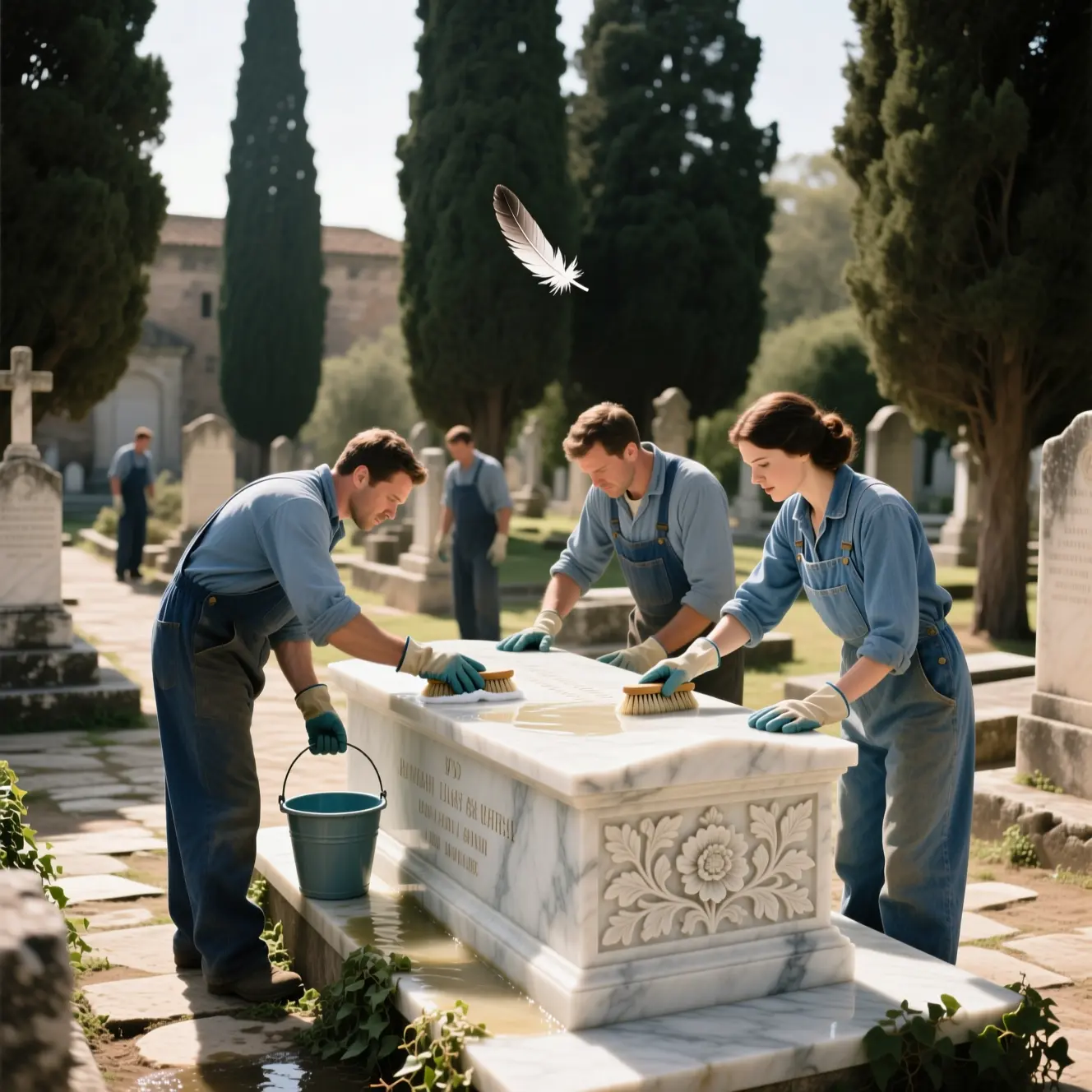 ۶. نگهداری و بازسازی سنگ قبر مرمر سفید