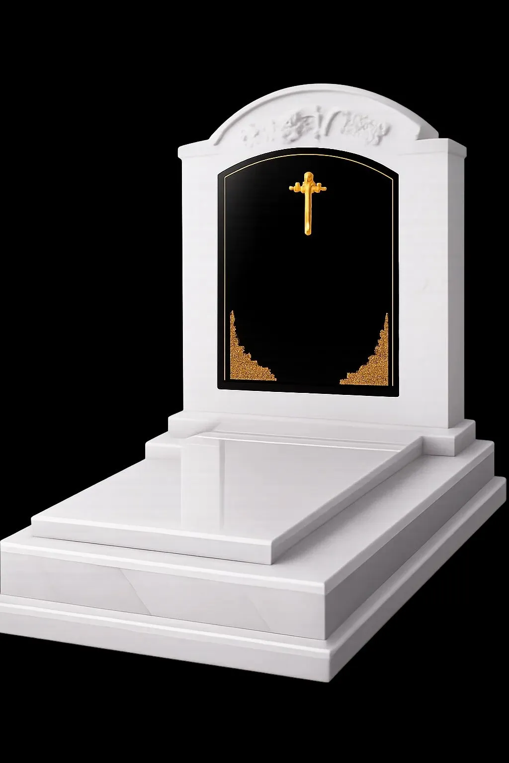 • رنگ‌های یکدست: رنگ غالب این سنگ، سفید خالص یا کرمی ملایم است که به‌راحتی با قرنیزهای مشکی یا طرح‌های گراورینگ ترکیب می‌شود و زیبایی خاصی به آرامگاه می‌بخشد.