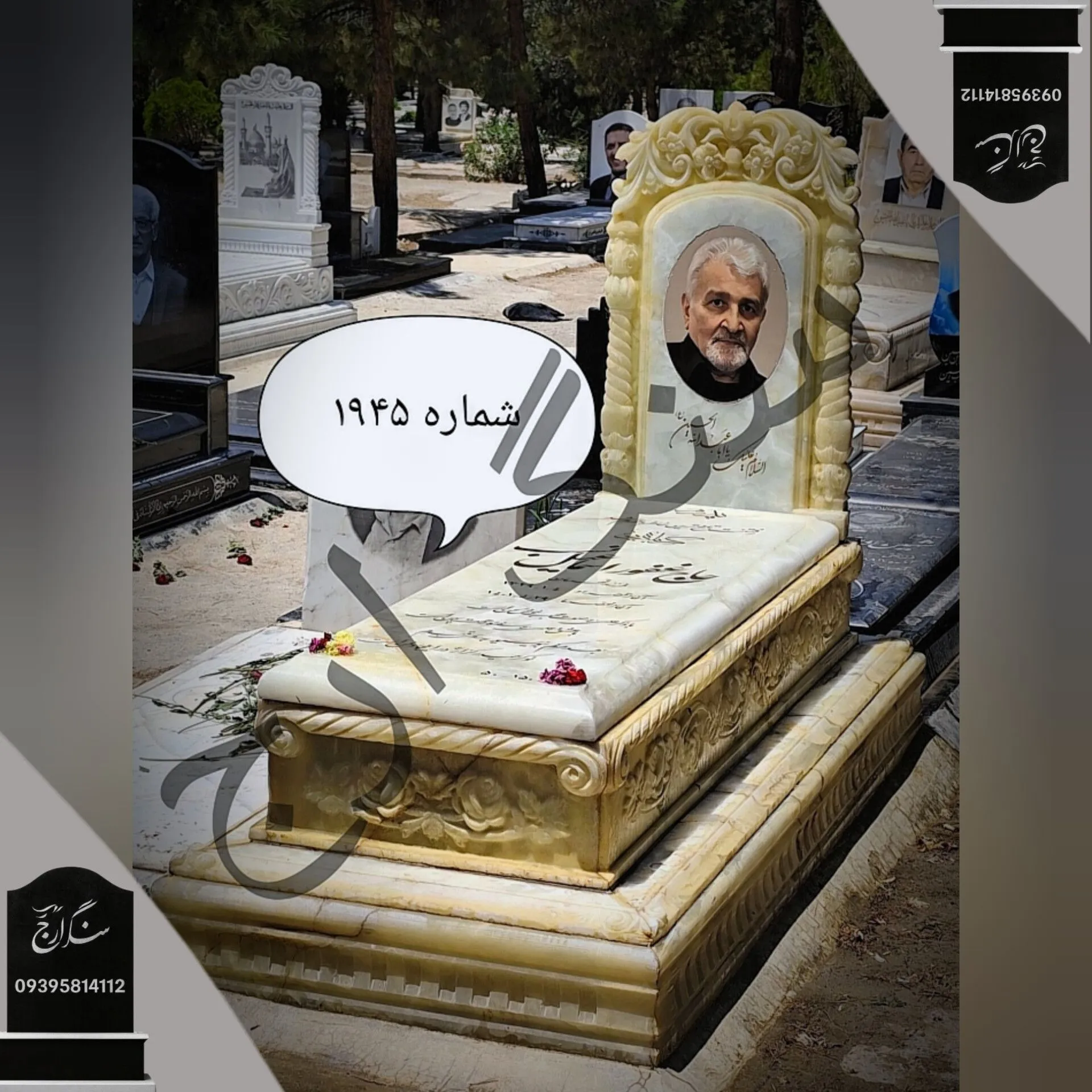سنگ قبر مرمر سفید طرح یادگار سپید. شماره 1945
