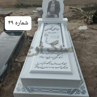 کتیبه ی طرح کار شده از جنس گرانیت اصفهان درجه یک و چاپ عکس متوفی به صورت سیاه و سفید (لیزری) روی کتیبه با کیفیت بسیار بالا