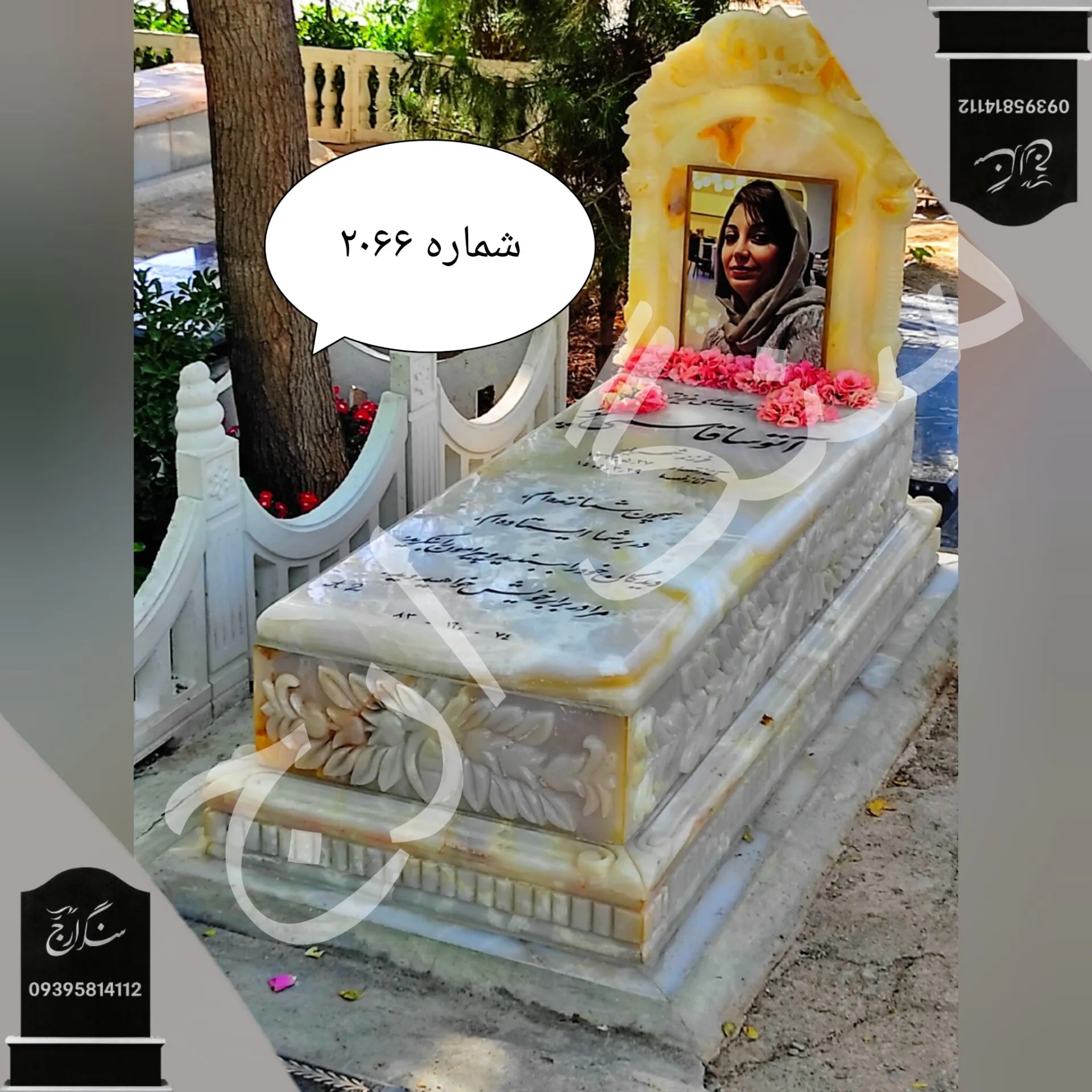 سنگ قبر مرمر نباتی ضخامت 6 سانتی متر . شماره 2066